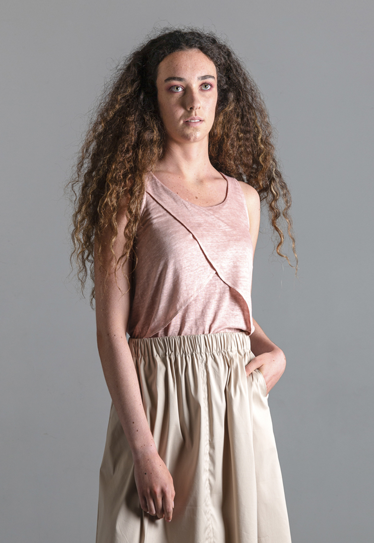 Camiseta en 100% Lino Orgánico de origen Portugués con certificado GOTS. Detalle solapas delanteras.