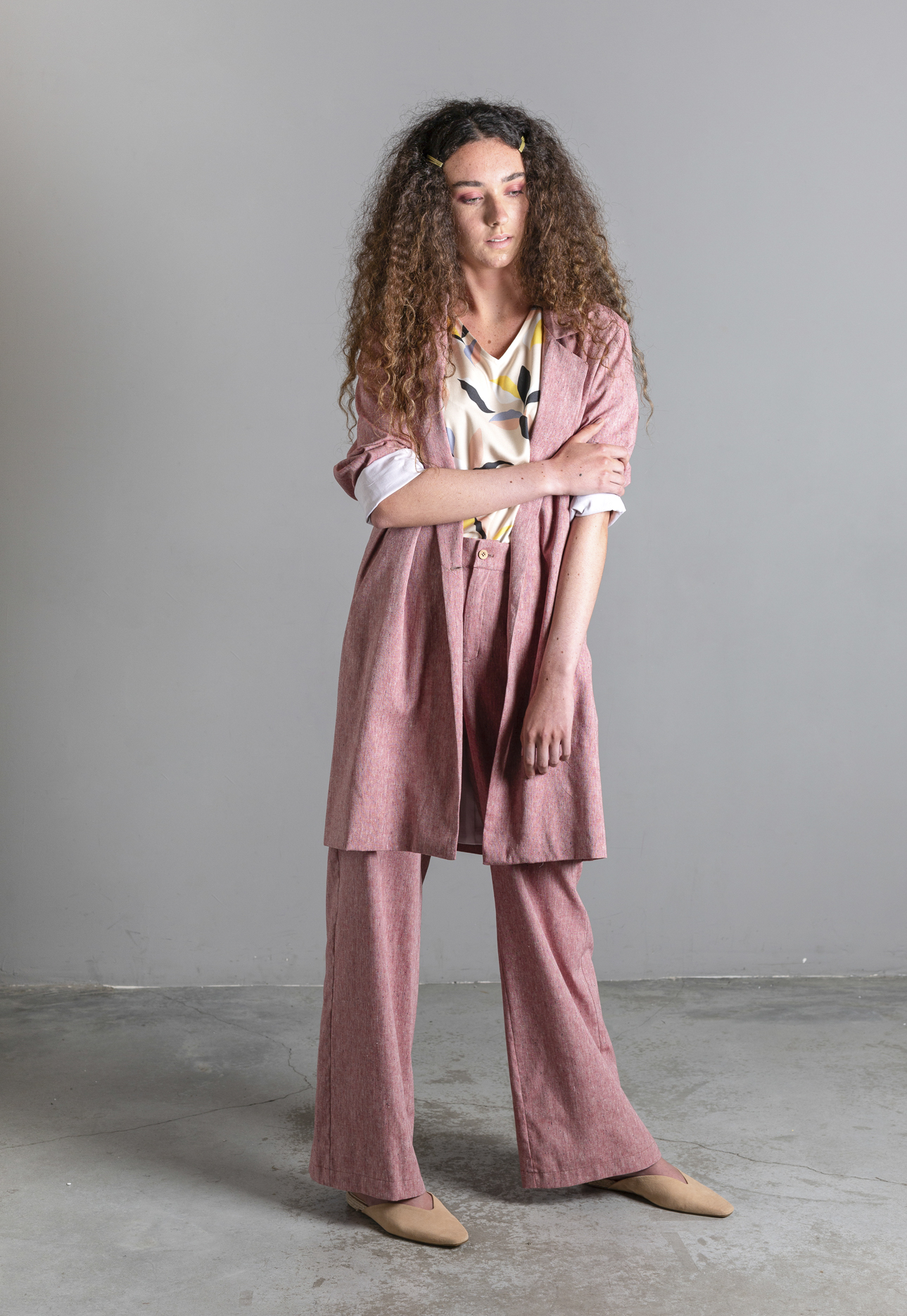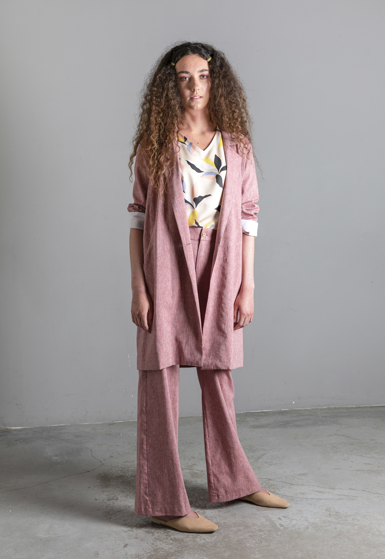 Gabardina en algodón (70%) Lino (25%) y Polyester (5%) con bolsillos y con forro.